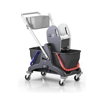 IPC kétvödrös, újrahasznosított műanyagból készült takarítókocsi, 2x15 literes, színkódolt vödörrel, new line, ergonomikus mop préssel, műanyag eszköztartó kosárral. IPC BIS kétvödrös takarítókocsi, környezetbarát újrahasznosított műanyagból. A 2 darab 15 literes, színkódolt vödör és a New Lineergonomikus mop prés hatékony munkavégzést tesz lehetővé. A 4 darab önbeálló kerék nagy mobiliást kölcsönöz a takarítókocsinak, az ütközők pedig segítenek elkerülni a baleseteket és az anyagi kárt.