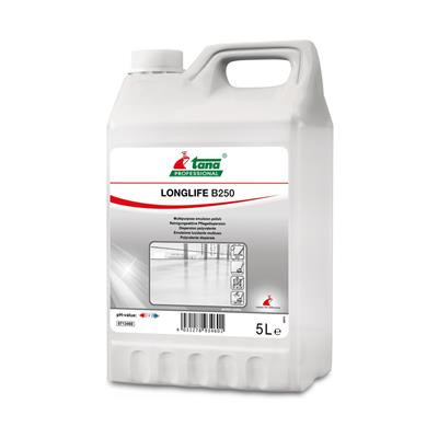 Tana 2793 Longlife B250 emúlzió, 10l kanna (régi név:B250 Universal) Tisztításaktív speciális diszperzió. Csúszásmentes, ellenálló, könnyűfényű bevonatréteget képez. Felületjavítóként is használható. Alkalmazható minden vízálló felületen, kezeletlen fa és polírozott kőfelületek kivételével. pH:8,2. Aktív tisztító speciális diszperzió. Csúszásgátló, kopásnak ellenálló, lágyan csillogó védőfilmet hoz létre. A kijárt nyomvonalak könnyen javíthatók. Minden vízálló padlóburkolatra, különösen ott ahol lényeges a csúszásmentes hatás. Ápoló tisztítóként szintén kiválóan alkalmazható.